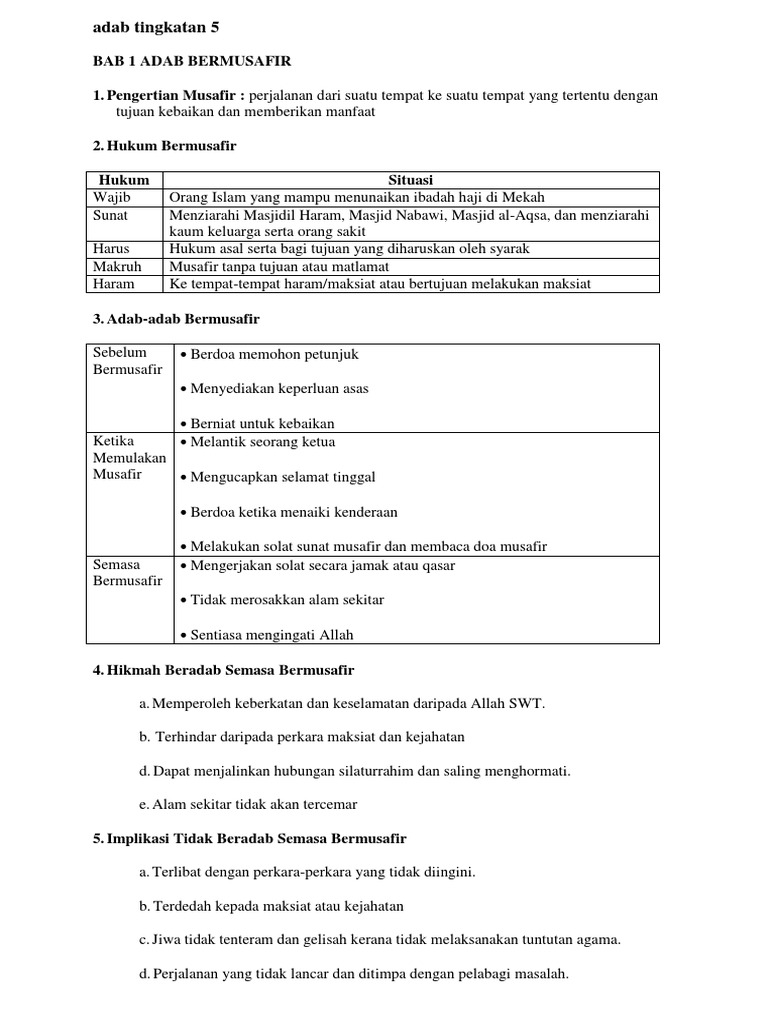 Adab T5 Doc Modul Latihan Pendidikan Islam Tingkatan 5 Sm Teknik Perdagangan Johor Bahru Pelajaran 32 Adab Bermusafir Bahagian A Aneka Course Hero